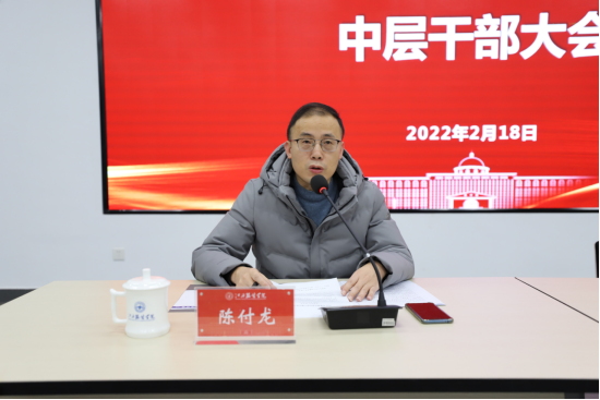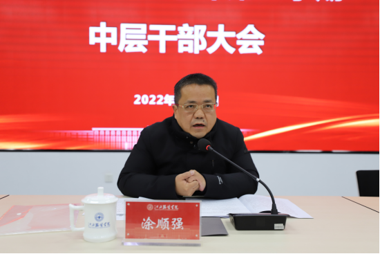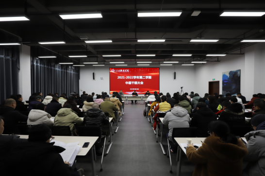 【新闻中心讯】2月18日,我校2021-2022学年第二学期中层干部大会在图书馆三楼学术报告厅隆重举行。理事长涂顺强、校长薛家宝、副理事长涂燕萍及校领导班子出席会议,全校中层干部参加了会议。会议由党委书记陈付龙主持。