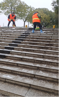 大家齐心协力,个个挥动着手中的扫帚、簸箕、铁锹等,全身心地投入到了除雪行动中,干得热火朝天。经过集体奋战,已经依次清理出清澜区艺术楼门口、天桥、图书馆两侧楼梯、主教学楼门口、行政楼门口等区域,主要道路的路面的积雪清理完毕,为广大师生畅通了道路。