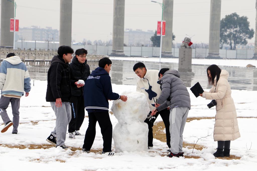 今日,江西服装学院迎来了开学后的第一场雪