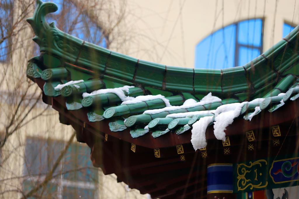 点点莹白落于屋檐、广场