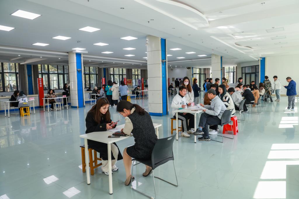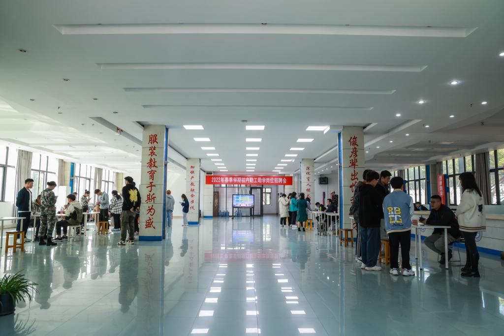 新闻中心讯3月8日下午,我校在思贤楼二楼大厅举办2022年春季学期校内勤工助学招聘活动,学校提供勤工助学岗位的用人部门到场参与现场招聘,校党委副书记唐新强莅临招聘现场,招聘活动吸引了百余名学生参加,招聘会由学生资助管理中心主任余晓萍主持。