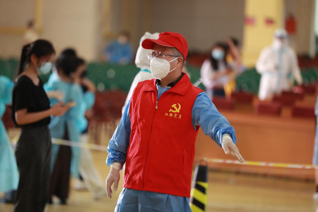 临时党支部成员、资产管理处付小宾说:“面对南昌突如其来的疫情,我校全国各地的学生家长一定会时刻关心小孩在学校的学习、生活和健康状况,我女儿今年也在读大二,作为父亲,深有体会,所以,我毫不犹豫参加志愿服务队,七次工作在核酸检测现场,只想为孩子们做些力所能及的事。”