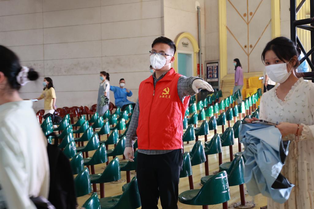 临时党支部成员、招生办公室张文强说,狭路相逢勇者胜,面对本轮突发疫情,我的主要工作是协助疫情防控办处置现场突发状况、维持检测队伍秩序、保障核酸采样物资储备,做好抗击疫情“秩序员”和“保障员”,在核酸检测一线我看到所有人都在为守护学校师生安全默默的奉献,这就是我们的学校,平安而美丽的江西服装学院。”