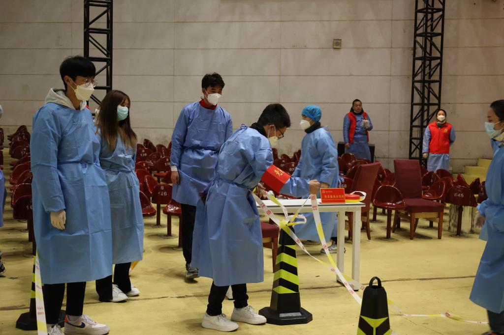 连日来,临时党支部100余名党员,佩戴党徽、亮出身份、冲锋在前。核酸采样、录入数据、物资搬运、防疫排查,校园各处都可见他们忙碌的身影,他们将防“疫”战场当作初心“考场”,把党员身份和党员服务亮在防控一线。
