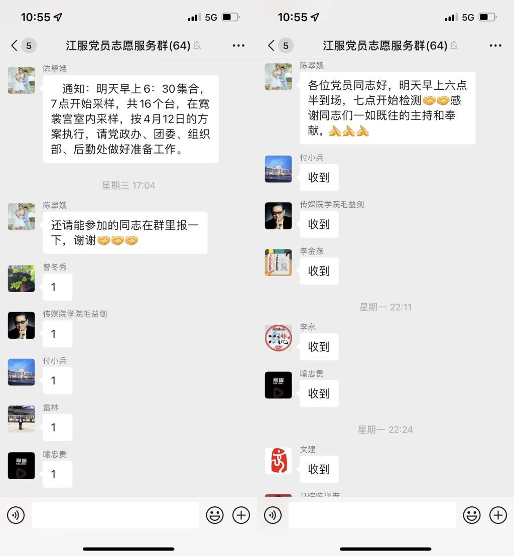 临时党支部成立后,迅速组建了线上微信群,把支部同步建在网上,把党员实时连在线上,第一时间传达学习中央、市委、学校党委关于疫情防控的最新部署和省、市、县防控指挥部的最新指令,第一时间把学校党委的关心关怀传递给每一位同志,不仅鼓舞了斗志、提振了士气,而且增强了大家早日夺取战“疫”全胜的信心和决心。临时党支部委员、党委组织部部长陈翠娥表示:“党有号召,党员有行动,学校临时党支部自3月19日成立后,党员同志积极响应,投身到志愿服务中,参与核酸检测,人员排查、预警应急,巡视巡逻等工作中,积极为快速打赢‘围剿清零’攻坚战发挥作用,以实际行动践行党员初心和使命!”