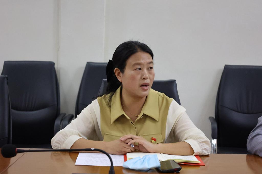 服装设计学院党总支书记蓝岚、校团委书记孟安然围绕学习内容,结合自身工作实际,谈了学习体会,表示要认真学习深刻领会精神实质,准确把握核心要义,把学习成效转化为推动学校高质量发展的强大动力,为学校申硕建设、“三步走”战略而努力奋斗。