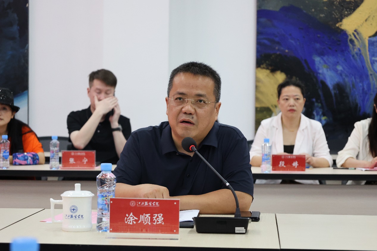 会上,理事长涂顺强对于都县县委黄法书记一行的到来表示热烈欢迎。他指出,我校与于都不仅是苏区振兴对口帮扶单位,一年来,双方在纺织服装产业进行了深度合作,江西服装学院积极参与于都县纺织服装产业发展,为于都产业经济发展贡献了力量。他希望双方就进一步加强县校合作,深化产教融合,提高人才培养质量,促进合作落地,服务于都地方产业发展等方面展开合作,整合资源,推动校地合作迈向更深层次和更高水平。