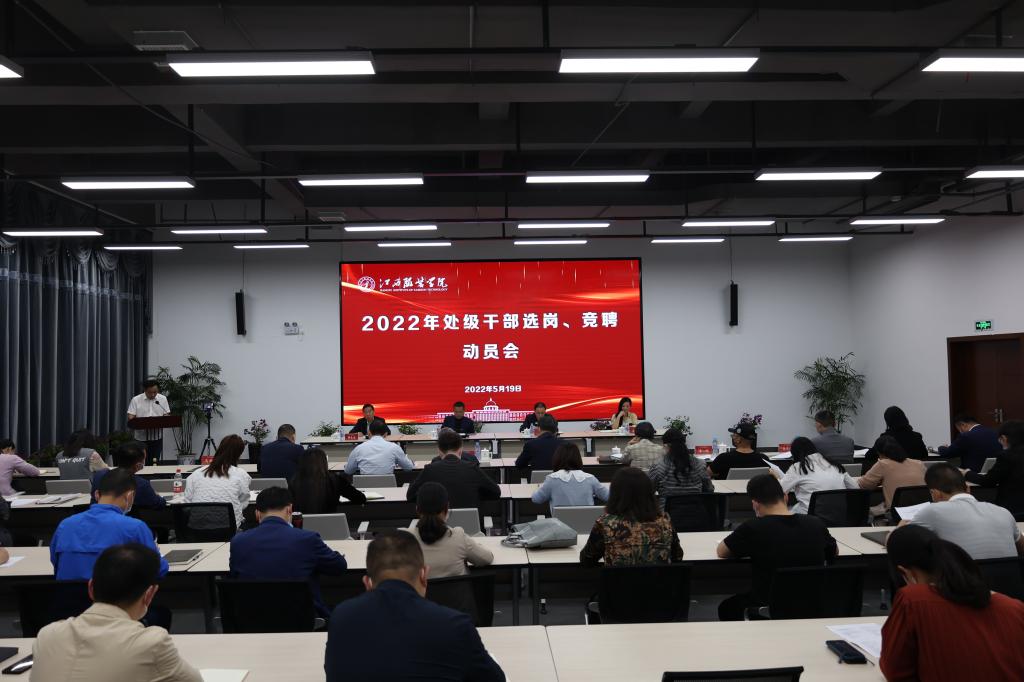 5月19日下午,我校召开了全校干部选岗、竞聘动员会,理事长涂顺强、党委书记陈付龙、校长薛家宝等校领导出席会议,二级单位负责人参加了线下会议,其他处级干部、科级干部及部分教职工代表通过腾讯会议线上参会。