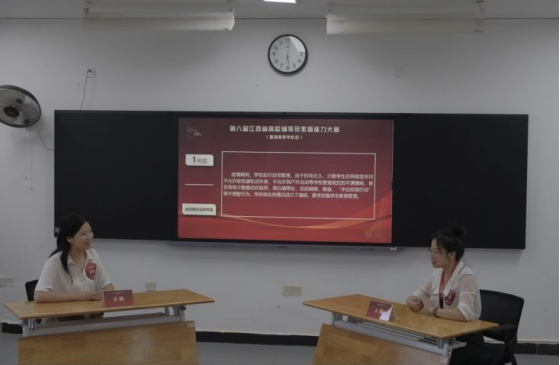 本次比赛共有三个环节,包括基础知识测试、案例研讨及谈心谈话。基础知识测试主要考察辅导员对党的创新理论、高校党建和思政领域会议文件精神掌握及业务素质等;案例研讨主要考察辅导员综合运用理论分析问题、研判问题、解决问题、应急处突等能力;谈心谈话主要考察辅导员对学生特征、学生成长成才规律的了解把握程度,对学生的教育引导能力、解决理论困惑和实际问题的能力等。三个比赛环节对参赛选手的理论水平、专业素养以及解决实际问题的能力进行全方位、多角度考察。