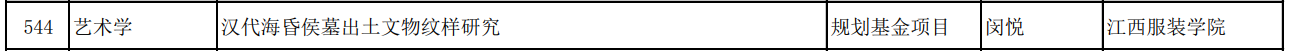 新闻中心讯(明海)近日,教育部社科司公示了2022年度教育部人文社会科学研究一般项目立项名单。我校服装设计学院院长闵悦教授申报的艺术学规划基金项目《汉代海昏侯墓出土文物纹样研究》列入公示榜单中,这是我校继2021年首次获批国家社科基金艺术学项目后,又一重大突破。