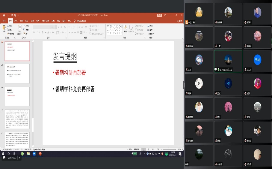2022年8月12日19点始,大数据学院利用腾讯会议平台召开了暑期第二次科研工作会议,学院全体教师参加了本次会议。会议由徐照兴院长主持,张学林副院长首先介绍了我院截止当前的科研状态,其次结合学院师资详细介绍了江西省自然科学基金项目申报事项,再次宣读了《江服科发〔2022〕36号-关于撤回专利申请的通告》并强调做好以保护创新为目的的正常专利申报,然后向各教研室部署了科研任务,最后徐院长强调说“各位老师对照年初各自拟定的科研计划,努力完成科研任务,按照张副院长的布置,扎实做好省自科项目的申报”。