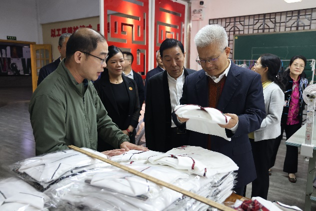听取汇报后,汪立夏一行还开展了实地考察。在798创意设计工作室,详细了解各产业学院建设情况;参观了图书馆“三院制”人才培养改革成果展和“余音”礼服定制品牌校企项目静态展;在创意市集,汪立夏饶有兴趣地观看每一件展品,并与参展的学生和指导老师亲切交谈;实地考察学校“一站式”学生社区和心理健康与教育咨询中心建设情况后,对学校心理健康教育工作和学生社区劳动实践给予了充分肯定,并针对性地提出了新的希望和要求。