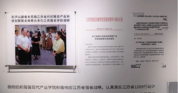 新闻中心讯(创新创业学院供稿) 江西服装学院“三院联动”人才培养改革成果展是学校顺利通过教育部普通高等学校本科教学工作合格评估后,在组织全体师生开展教育思想大讨论的基础上,明确以“注重学理、强化实践、贴近行业、全面发展”为人才培养思路,以应用能力培养为主线,串通学科专业教育、应用实践教育、创新创业教育人才培养三阶段,探索专业学院、产业学院、创新创业学院“三院联动”培养机制改革后在专业建设、产教融合、应用研究、学科竞赛、创业孵化等方面取得的系列成果展示。