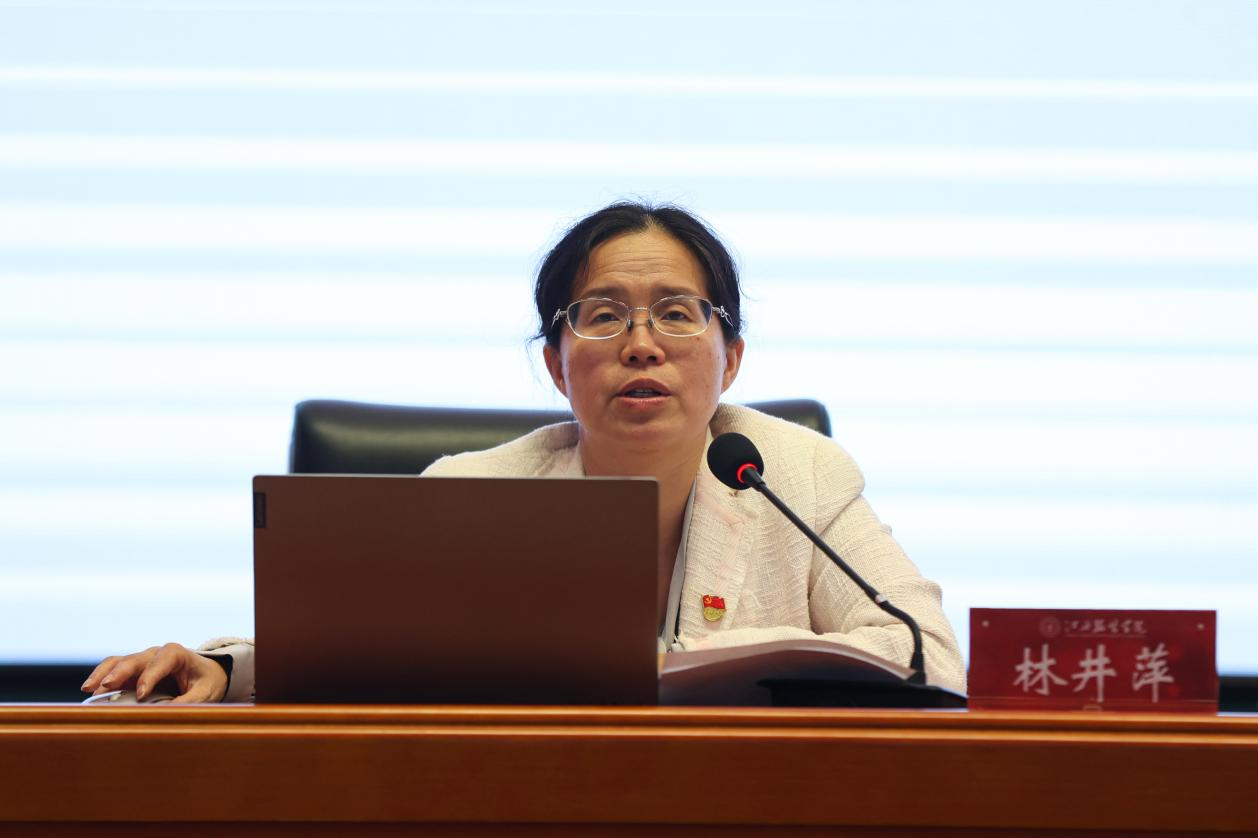 10月25日下午,学校党委书记、督导专员林井萍同志以“铭记伟大成就,做挺膺担当的江服人”为题,在思贤楼三楼报告厅为2024级新生讲授一堂思政课。思政课由校党委组织部部长陈翠娥主持。