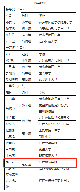 在此次比赛中,我校新青年普法协会高仪同学代表江西服装学院参赛,表现出色,荣获全省高校组二等奖。