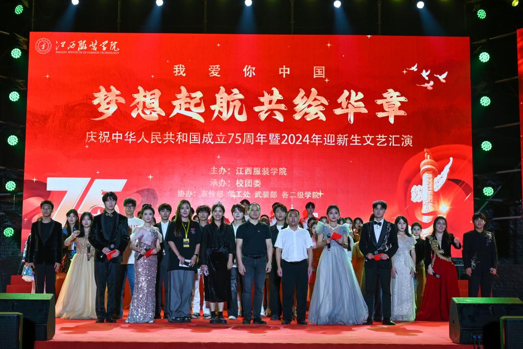 新闻中心讯 金秋送爽同庆盛世中华,硕果飘香共绘江服华章。9月26日晚,江西服装学院“梦想起航 共绘华章”庆祝中华人民共和国成立75周年暨2024年迎新生文艺汇演在田径场精彩上演。