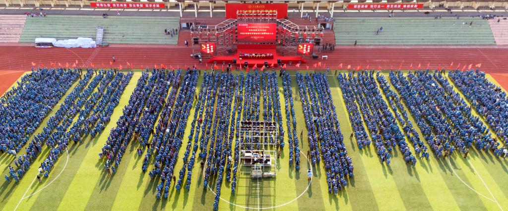 大会在庄严的国歌中拉开序幕,护旗手振臂一挥,鲜艳的五星红旗冉冉升起,迎风飘扬。
