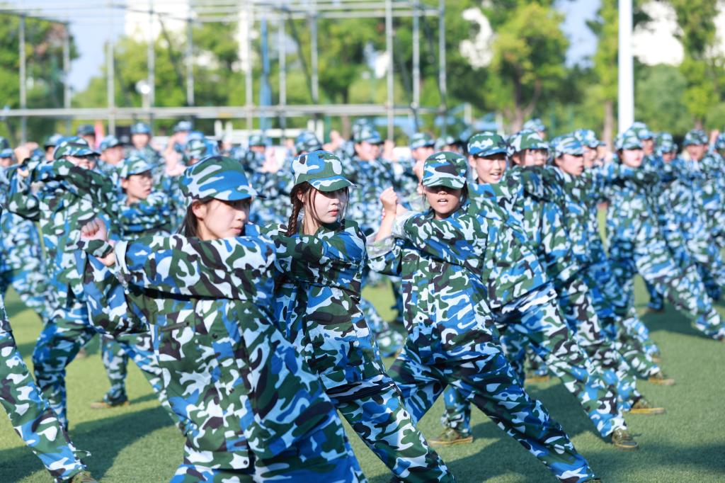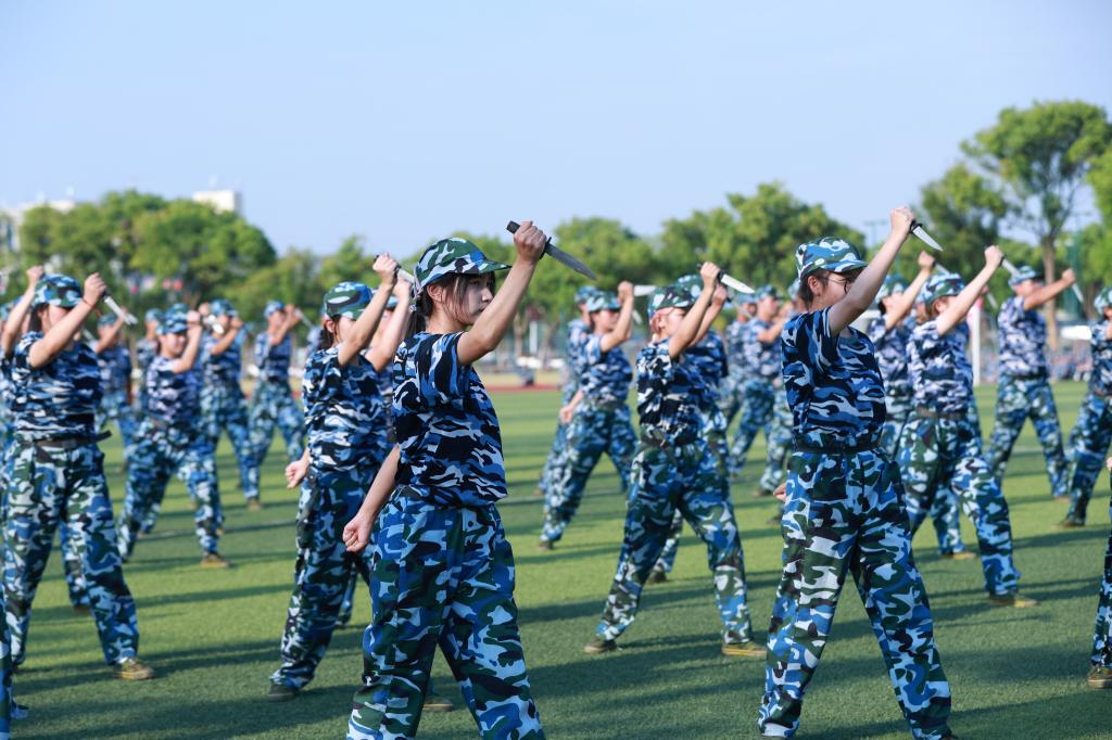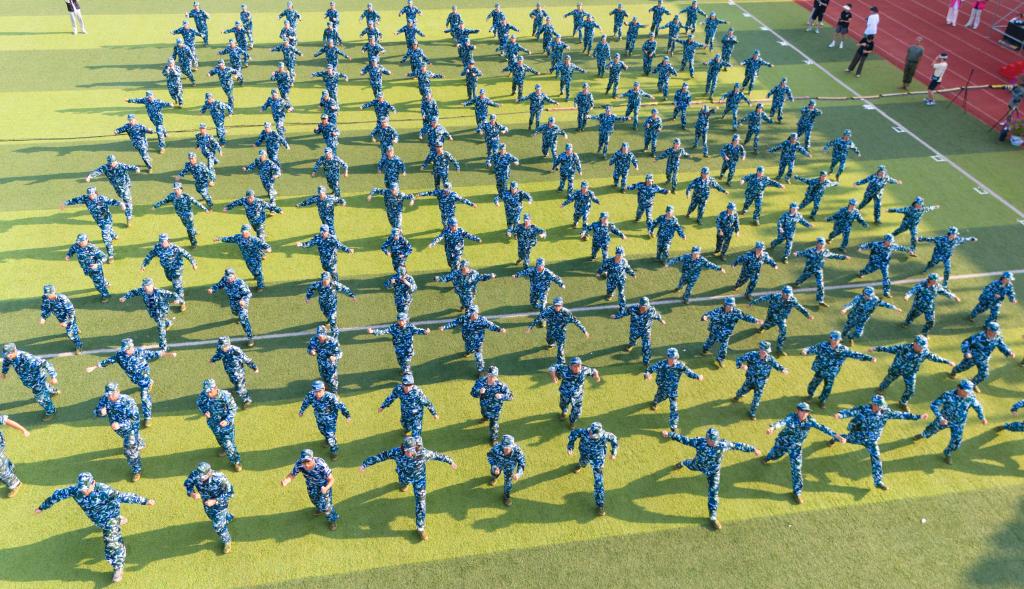 哨声响起,各分列式方队有条不紊地散开、组合,以高昂的士气、铿锵的步伐展示训练成果;擒敌操方块阵出招迅速、攻防兼备,动作刚柔并济,一招一式有来有往;匕首操方块阵动作干脆利落,一套出鞘、弓步、上刺、侧刺等连招势如破竹;刺杀操方块阵步伐一致,动作干净利落,随指挥员一声令下,吼声如雷贯耳,震人心魄。