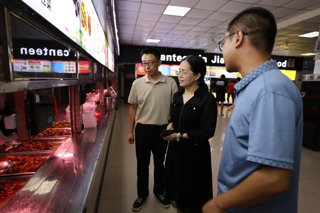 林井萍强调,学校后勤保障处、餐厅经营方有关工作人员务必坚持安全第一、质量至上,筑牢食品安全防线,要强化服务意识、提高管理水平,实施“日管控、周排查、月调度”,加强督导督查,要规范食品加工操作流程,做好“明厨亮灶”,要落实好经营单位准入、评价和原材料追溯制度,抓好源头管控,做到物美价廉,为师生就餐创造安全、健康、舒适的校园环境。
