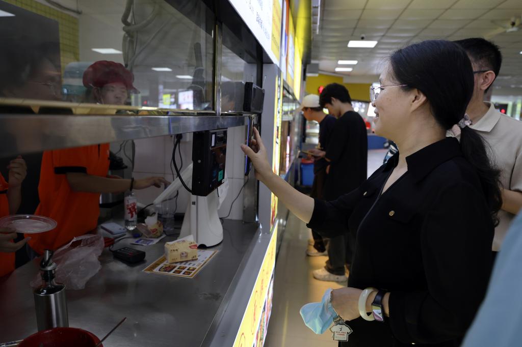 林井萍一行深入清河区第一食堂,认真听取了食堂供餐工作的详细汇报,深入了解食品原料采购渠道、饭菜价格及菜品质量、餐饮器具设施消毒、食堂用电、燃气安全等情况,并现场查看操作间、消毒间卫生及管理情况,仔细检查了食堂留样柜、食品原料采购台账等。在学生集中进餐期间,林井萍与师生一起排队就餐。就餐过程中,林井萍与同学们轻松愉快地交流,仔细询问学生对食堂环境、菜品价格、菜品种类等方面的意见和感受,了解同学们对餐饮服务的建议和需求,同时询问学生近期的学习和生活情况。