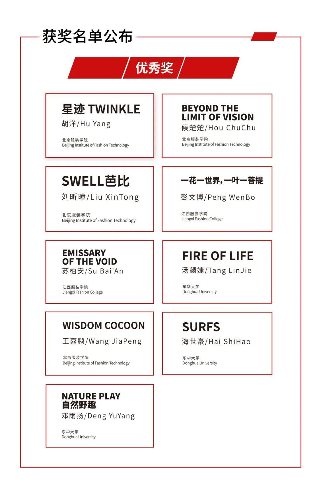 新闻中心讯(万强) 在2024“真皮真自我”全球学生设计大赛中国大陆赛区决赛中,我校服装设计学院20时装本科4班陈炳旭设计作品《光而不耀 静水深流》获服装类亚军,服装工程学院21服工本科1班彭文博设计作品《一花一世界,一叶一菩提》、服装设计学院21服设本科1班苏柏安设计作品《EMISSARY OF THE VOID》获优秀奖。