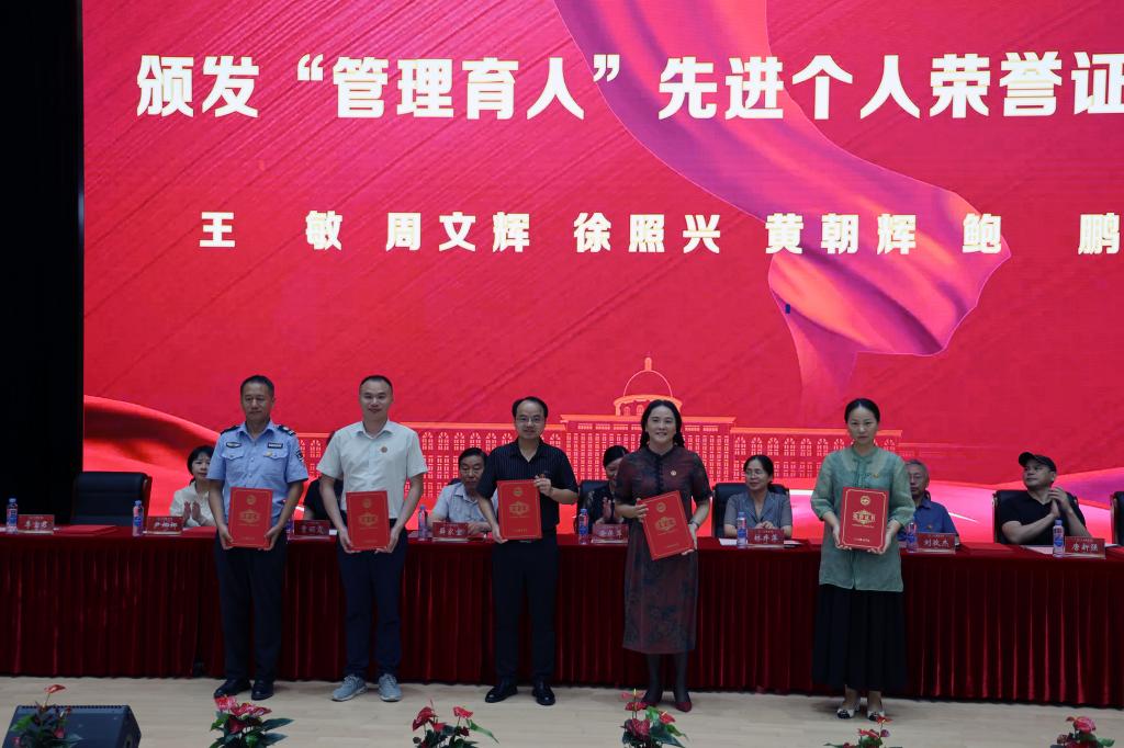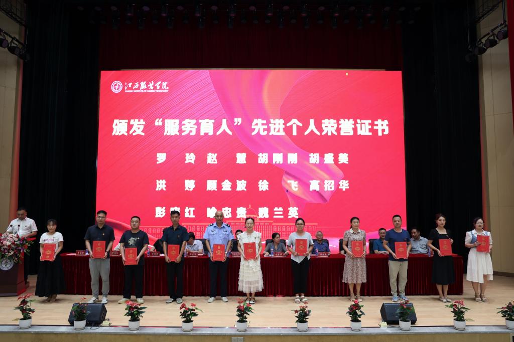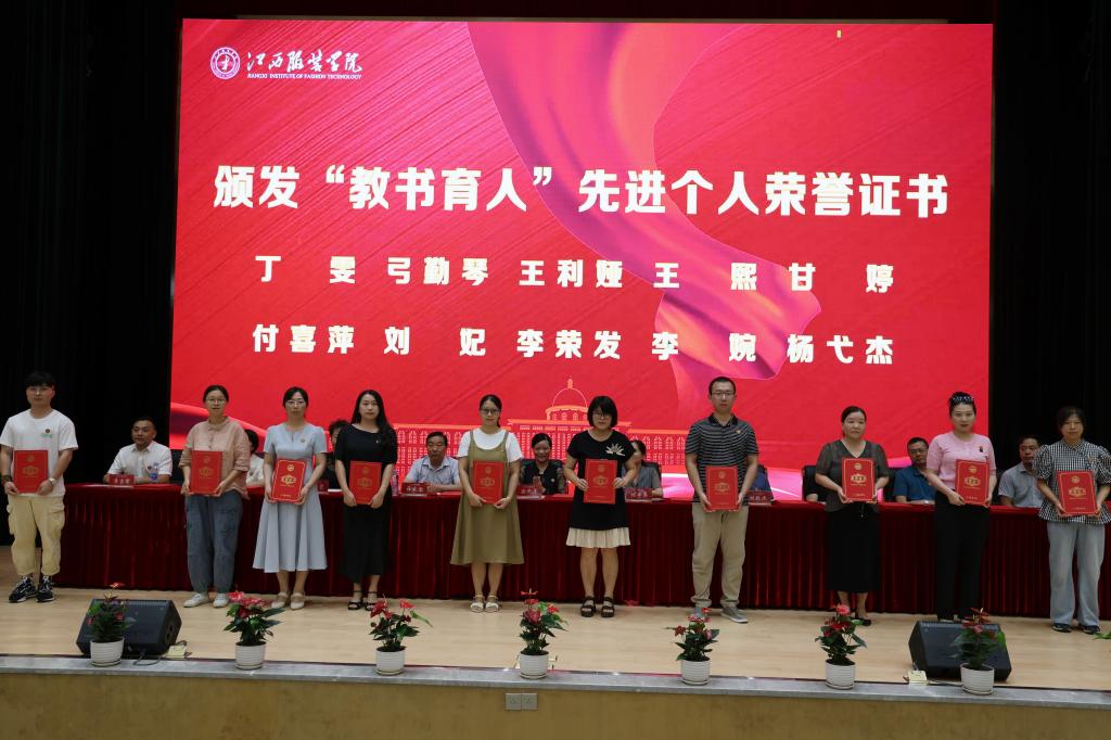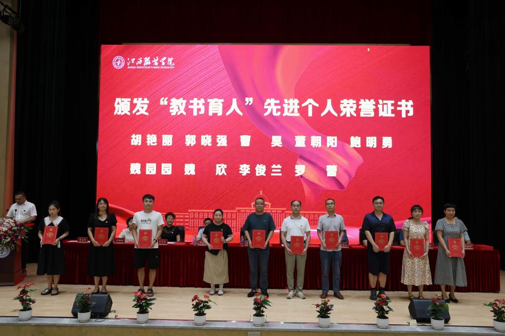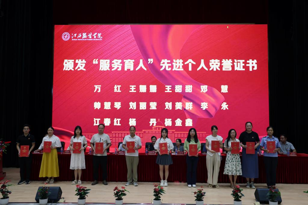 李宝君副书记宣读了2023—2024学年江西服装学院 “三育人”先进个人表彰文件。与会校领导为 “教书育人”“管理育人”“服务育人”先进个人颁发了荣誉证书。与会师生向获得表彰的优秀教师送上了热烈的掌声和诚挚的祝贺。学校号召全校教职工要以受表彰的同志为榜样,加强政治理论学习和思想道德修养,不断提高自身业务素质和服务水平,切实履行教书育人、管理育人、服务育人的神圣使命,为学校教育事业发展做出更大的贡献。