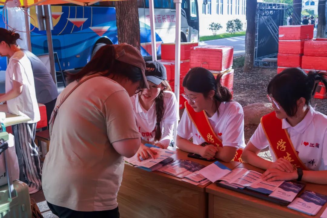 一抹抹可爱的身影,在炽热骄阳下奔走,即便衣衫浸满汗水,迎新志愿者们用微笑与双手,为每一位新生和家长传递江服的第一份温暖与热情。