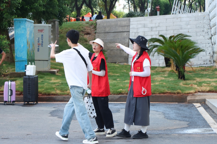 9月7日清晨8点,第一辆接送新生和家长的大巴驶入学校,2024级江服新生在主教学楼后的锦绣路迎新点开始报到。学校招生处、学工处、各学院的志愿者们早已准备就绪,他们身着红色马甲,满怀责任感,各司其职,热情地为新同学们提供报到流程、路线指引、拍照打卡等服务,确保每一位新生都能顺利融入这个大家庭。