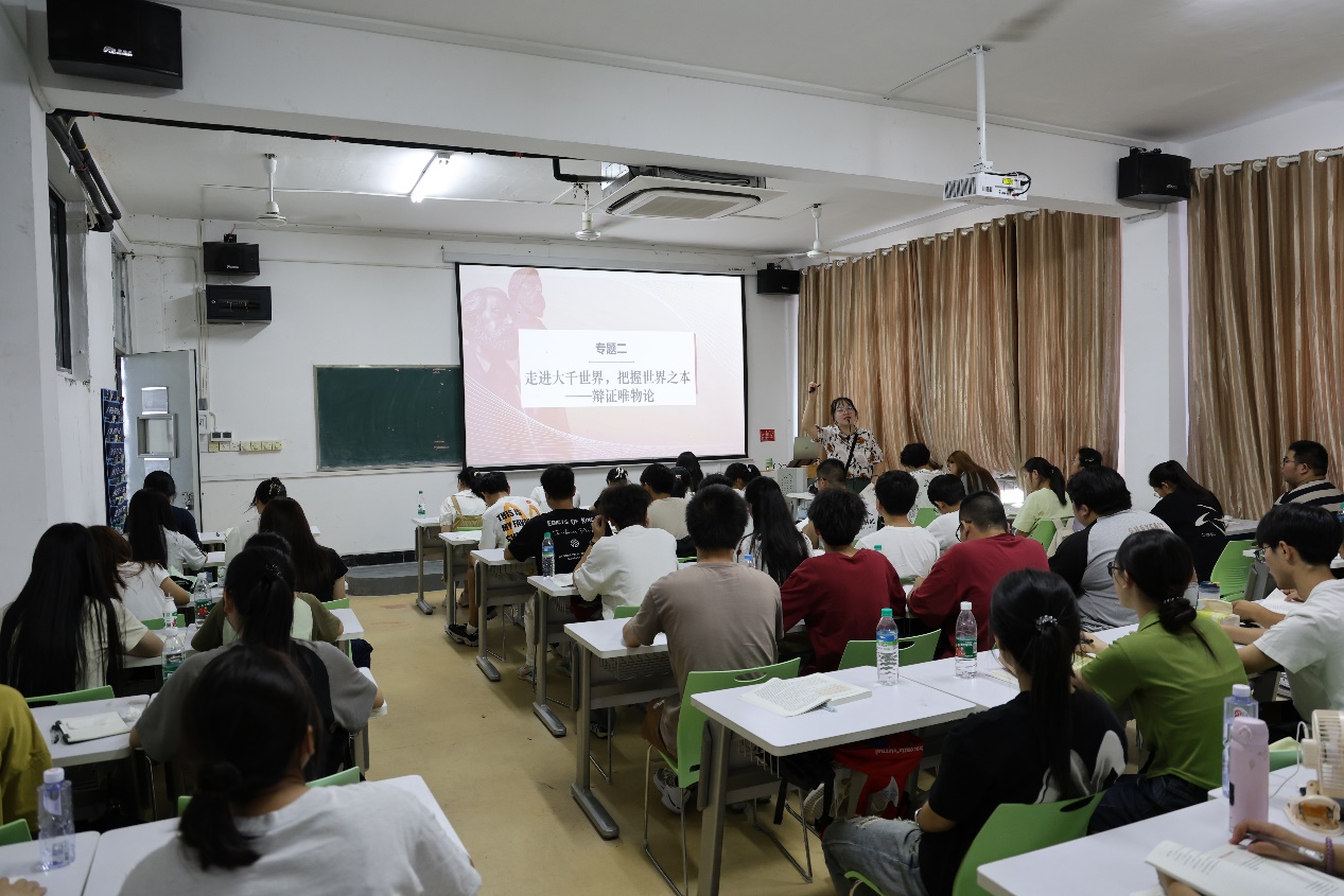 在主教学楼620教室,林井萍与23财管本科5班和23产品本科3班同学们一起认真聆听了马克思主义学院董婷婷老师的《马克思主义基本原理》课程,她认真记录课程重点,仔细观察课堂情况。林井萍充分肯定了董婷婷的授课,并围绕教学内容、教学方法和教学效果与董婷婷进行深入交流。