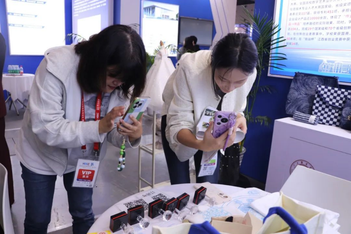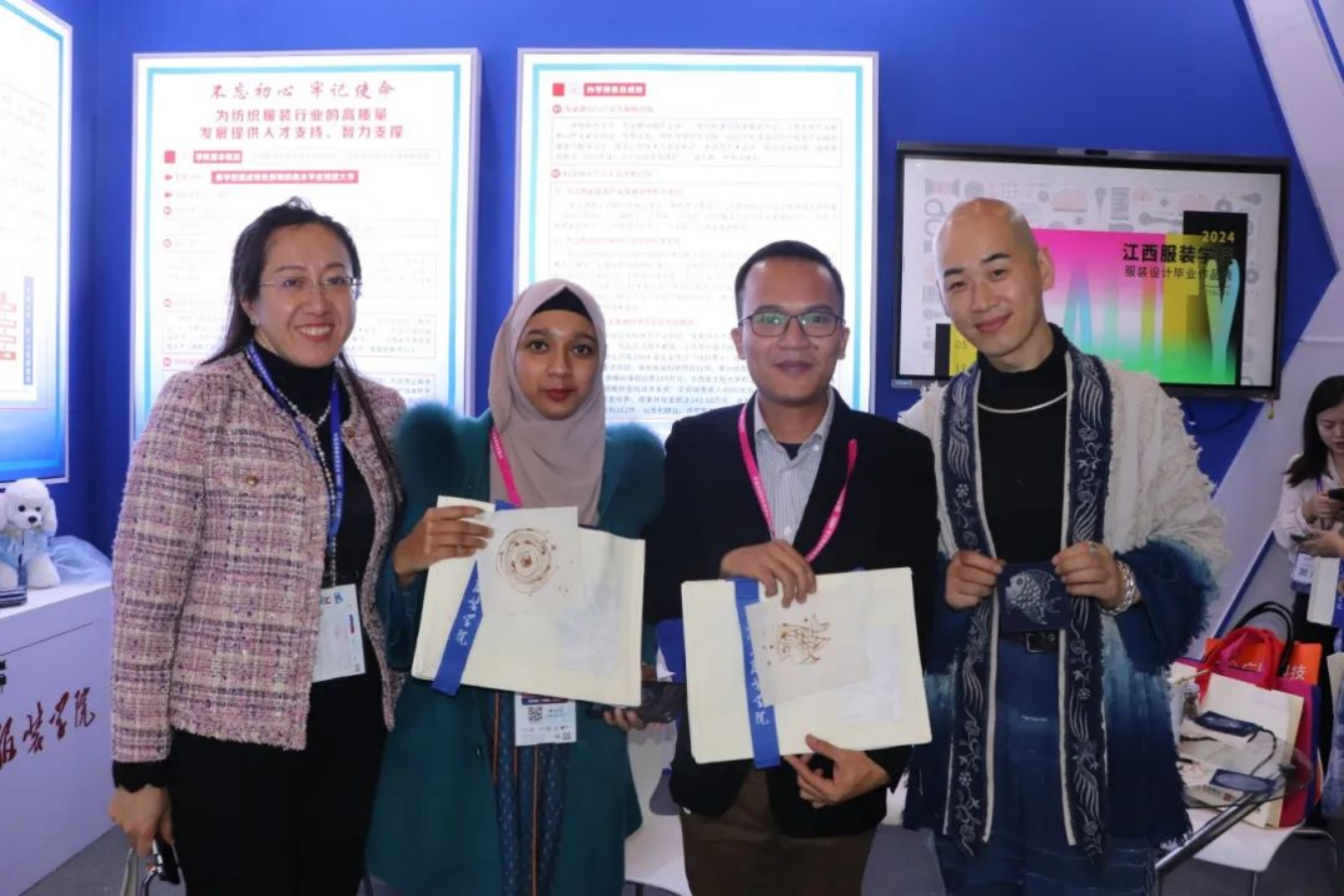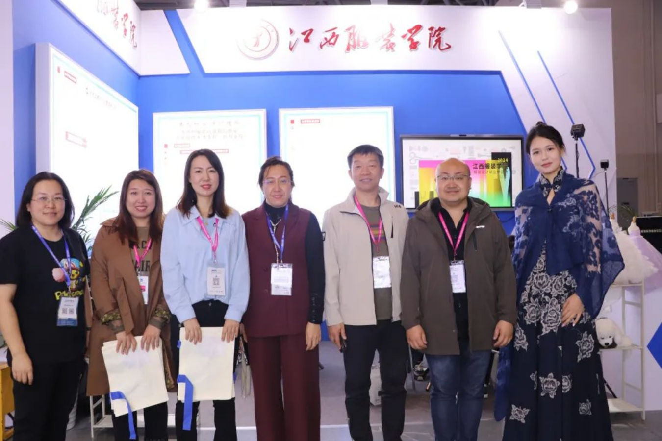 展览期间,江西服装学院特别设置了“洪州青瓷文创打卡区”“VR智慧服饰体验区”“宁航蜡染体验区”等互动专区,现场邀请参展观众进展厅沉浸式体验江服产学研成果,吸引近万人次参观我校展厅。