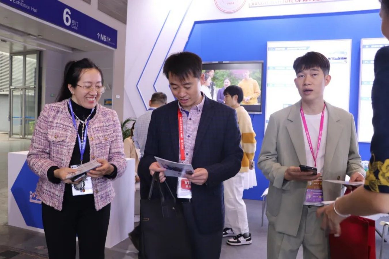 展厅现场,众多参展嘉宾、院校、企业及观众,慕名而来,了解我校“三院联动”人才培养模式、交流学习我校办学经验、参观我校产学研作品。