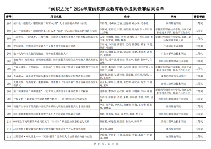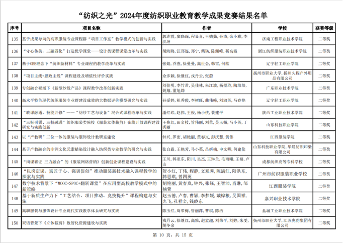 我校获“纺织之光”2024年度纺织职业教育成果竞赛奖10项