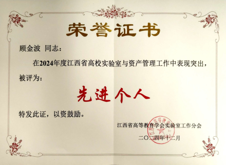 我校获2024年度江西省高校实验室工作先进个人