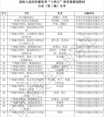 我校首次大规模获批中国纺织服装教育学会的纺织服装类“十四五”部委级规划教材(部分)