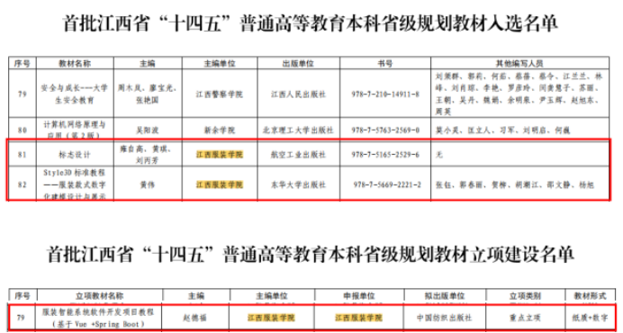 我校教材获首批江西省“十四五”普通高等教育本科省级规划教材入选、立项建设3部