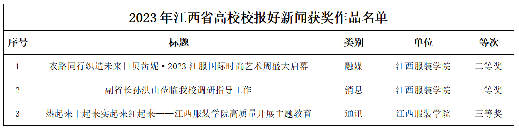 新闻中心讯(文/樊翔)经省委教育工委、省教育厅批准同意,江西省高校校报研究会组织开展的全省高校校报好新闻评选活动于2024年12月31日公布了评选结果,我校3篇融媒作品分获二、三等奖。