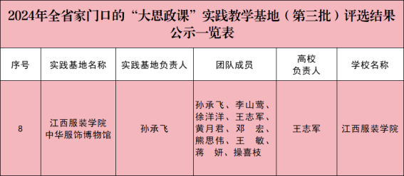 在实践教学基地建设方面,我校中华服饰博物馆成功入选“2024年全省家门口的‘大思政课’实践教学基地”。