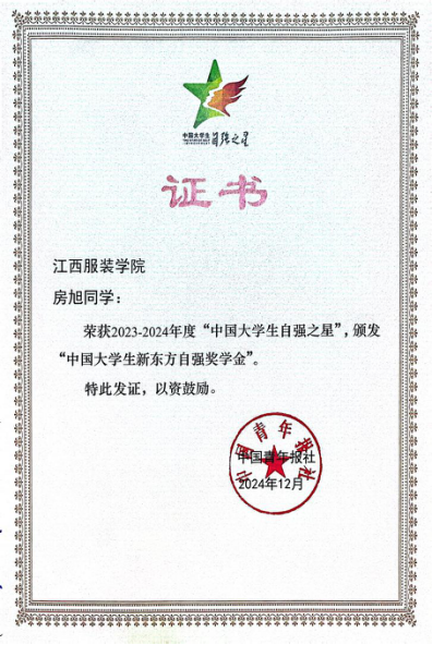 新闻中心讯(文/樊翔)近日,由共青团中央、全国学联指导,团中央基层建设部、中国青年报社主办的2023-2024年度“中国大学生自强之星”奖学金推报活动评选结果揭晓。我校大数据学院房旭同学荣获2023-2024年度“中国大学生自强之星”称号。