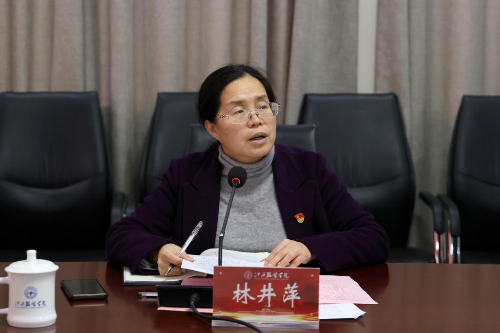 林井萍指出,要认真学习领会习近平总书记的重要讲话和重要文章精神,深入学习贯彻习近平新时代中国特色社会主义思想,坚持读原著、学原文、悟原理,做到学懂弄通做实,将理论学习与问题查摆紧密结合,切实做到学思用贯通、知信行统一。为推进中国式现代化江西实践贡献智慧和力量,为学校本科教育教学审核评估和申硕发展努力拼搏。