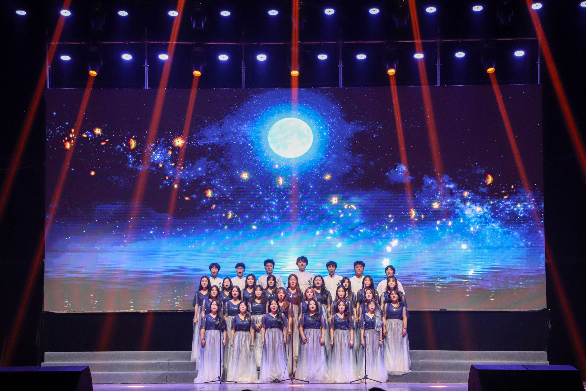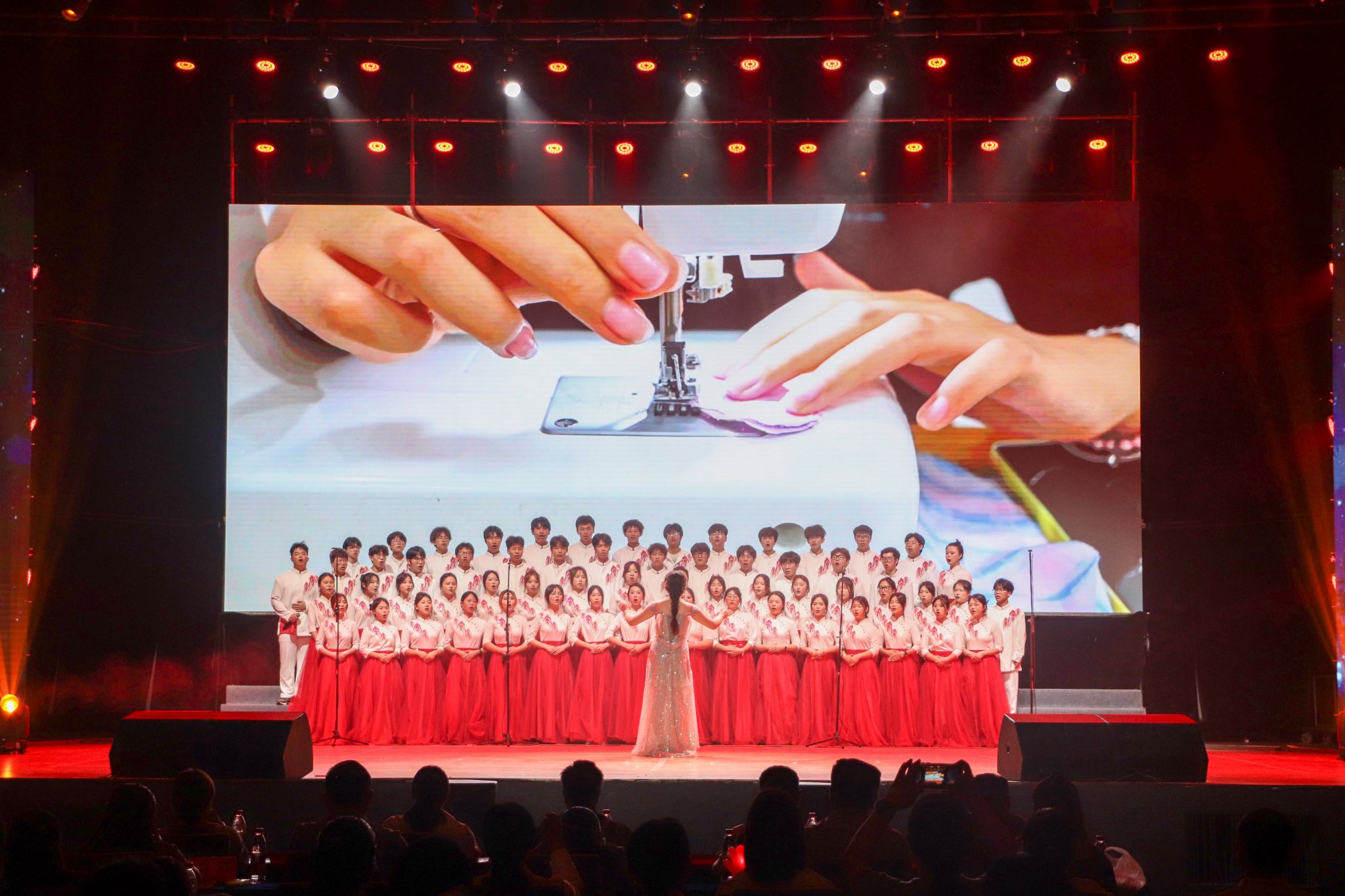 在第一阶段比赛中,各学院紧扣主题,精心演绎了《不忘初心》《映山红》《有我》《祖国不会忘记》等经典红歌。艺术设计学院以一首《不忘初心》拉开了序幕,深情回望党的百年征程;服装设计学院献上的原创歌曲《玉盘》,将传统文化与现代元素巧妙融合,赢得满场喝彩;人文学院带来的《映山红》,以动人旋律唤起观众对革命岁月的深刻记忆;商学院的《有我》则以铿锵有力的节奏唱响新时代青年的责任与担当;服装工程学院的《祖国不会忘记》,致敬无名英雄,感人至深;时尚传媒学院以《荆棘之上》展现媒体人不畏艰险、记录时代的使命;大数据学院则用《循着风去远航》唱出科技报国的青春誓言。