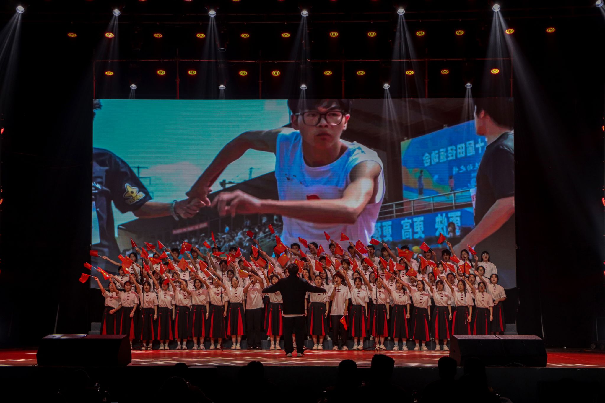 晚上六时整,随着主持人的精彩开场,比赛正式拉开帷幕。本次比赛分为两个阶段:第一阶段为必选红歌合唱,第二阶段为自选节目展示。来自全校各学院的七支代表队依次登台,用激情澎湃的歌声和创意十足的表演,展现了江服学子对祖国的热爱与对理想的坚守。