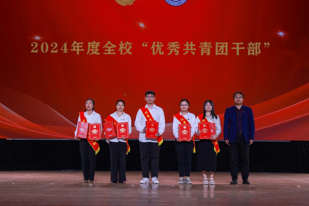 与会领导为获得2024年度“返家乡”社会实践、“学雷锋”活动优秀志愿者、五四红旗团支部、优秀共青团员、十佳基层团务工作者、优秀共青团干部、大学生自强之星及标兵、青年五四奖章、五四红旗团委等荣誉的集体和个人颁发奖牌、证书。