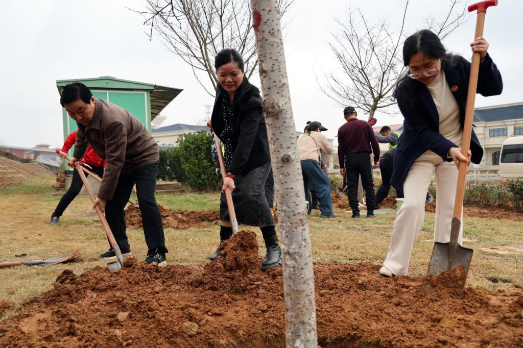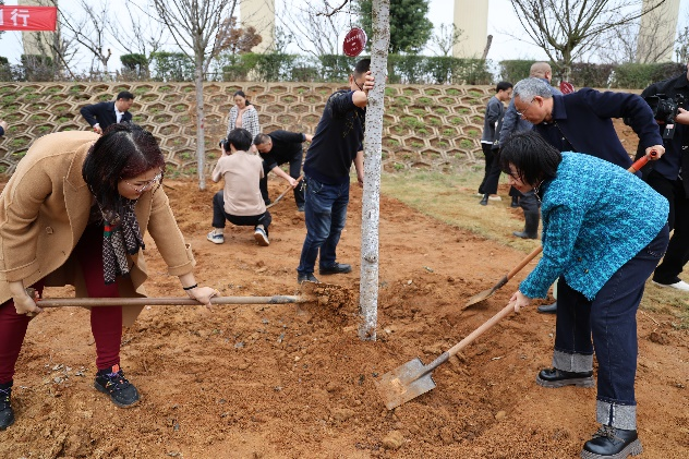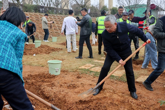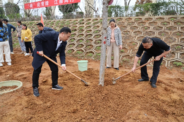 新闻中心讯(文字:万强 樊翔)初春的校园,春风拂绿,万象更新。为深入践行习近平生态文明思想,共建绿色校园,在2025年全国第47个植树节到来之际,3月12日下午,我校在国际会议中心4号楼旁空地处开展“‘植’此青绿,江服同行”义务植树活动。理事长涂燕萍、党委书记林井萍、校长薛家宝等领导班子成员和理事会、监事会、校领导、各分工会教职工代表共同栽种染井吉野樱花树苗,为校园再添一抹盎然生机。