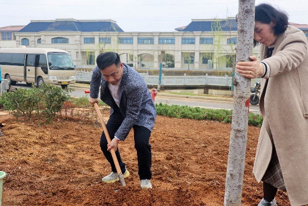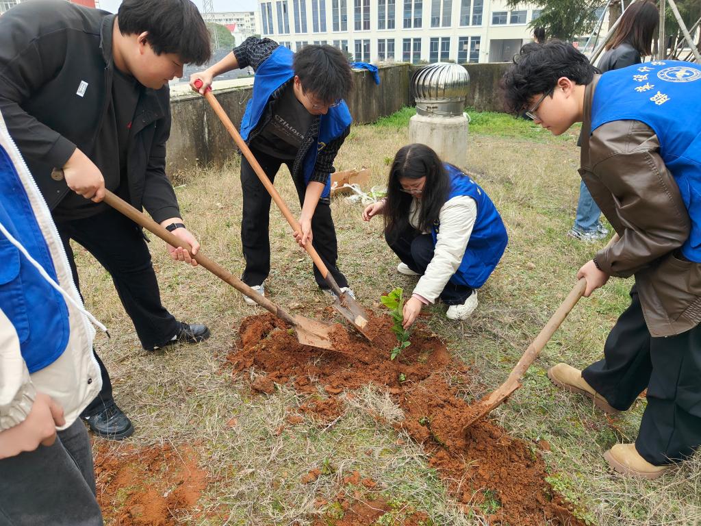 近年来,学校积极贯彻落实习近平生态文明思想,持续推进绿色校园建设、开展环保主题活动等举措,全面提升校园生态品质。此次植树活动不仅为校园增添新绿,更以“躬行实践”的方式强化了师生的生态文明意识。未来,学校将常态化开展绿化志愿活动,号召更多师生争做绿色校园的“建设者”和“守护者”,共同绘就人与自然和谐共生的美好画卷。
