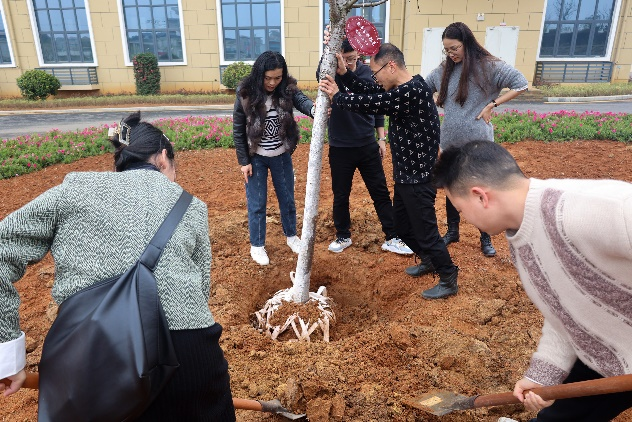 下午13:30时,校理事会、校党委、校行政等校领导一行来到植树现场。工作人员提前备好工具、划定区域,校领导和教职工们挽起衣袖、手持铁锹,一起和各分工会教职工代表一道挥锹铲土、扶苗培土、提桶浇水,现场一片热火朝天的劳动景象。经过辛勤的劳动,20多棵染井吉野樱花树苗在春风中昂然挺立,初现“新绿”景观。后续,各单位采取认栽、认养的形式负责树苗的养护工作,确保“栽一棵、活一棵,种一片、绿一片”。