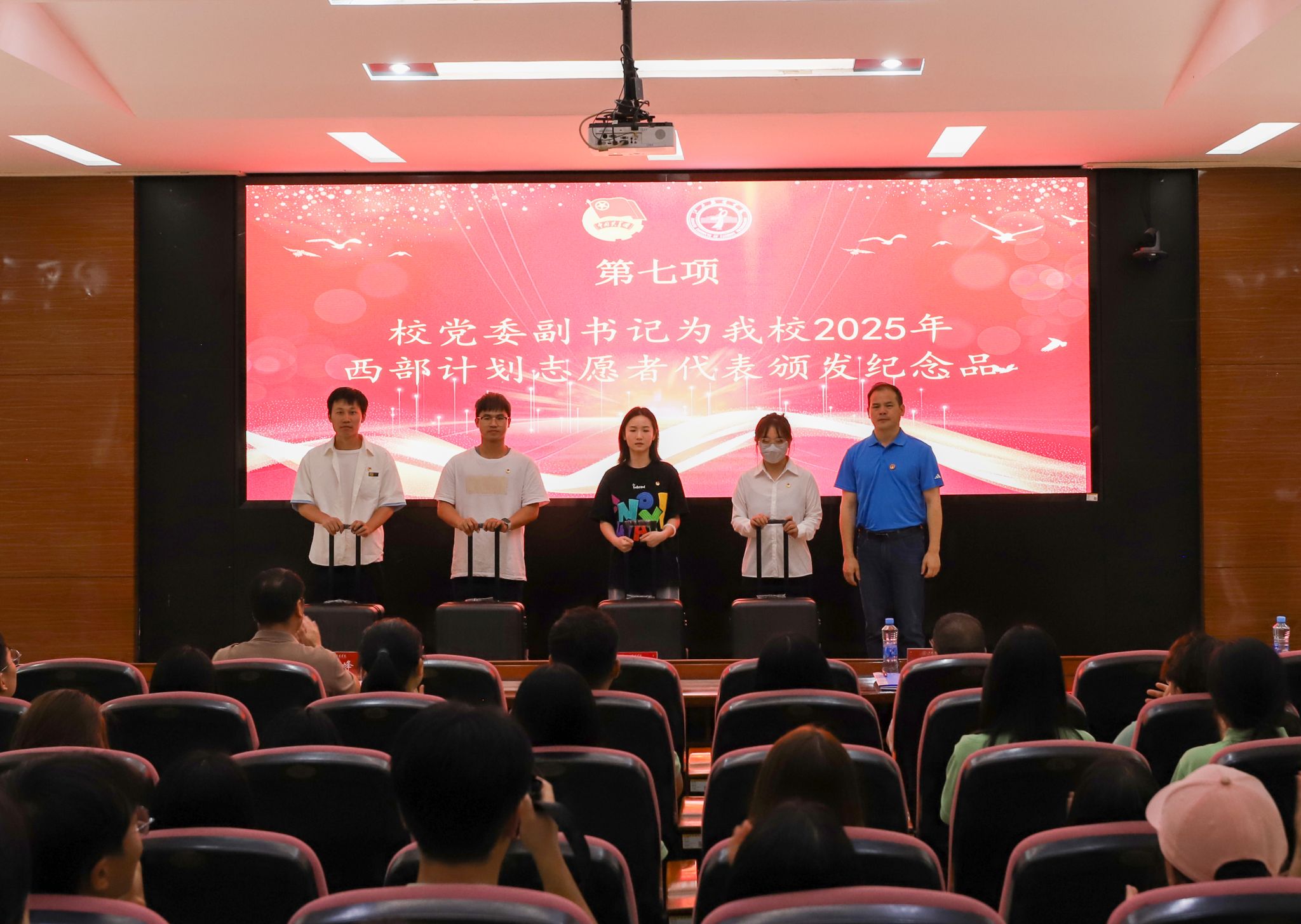 最后,唐新强为2025年西部计划志愿者代表颁发纪念品,并宣布:“2025年江西服装学院大学生暑期社会实践队出征!”