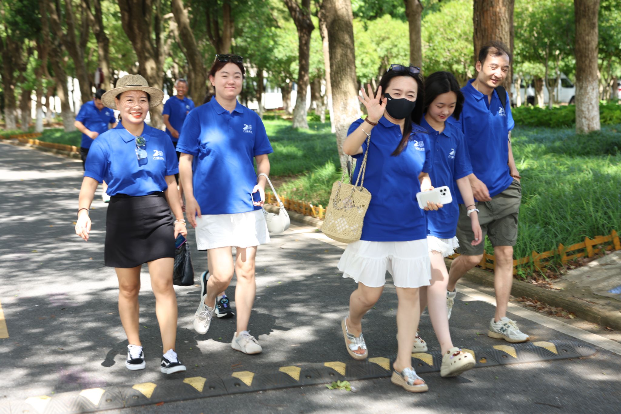 返校期间,校友们在江春红老师的带领下重走校园路,参观了798中华服饰博物馆、图书馆、衣都女神、创业街等地方,坐在了如今的智慧教室,走进了旧貌换新颜的宿舍,回顾着昨日的大学时光,找寻着青春的记忆。“图书馆边上的小树林如今已蔚然成林!”“教室和宿舍楼都装上了空调!”今昔对比间,母校的飞速发展令校友们自豪不已,而熟悉的林荫道、老建筑又瞬间唤醒了深藏的青春记忆。