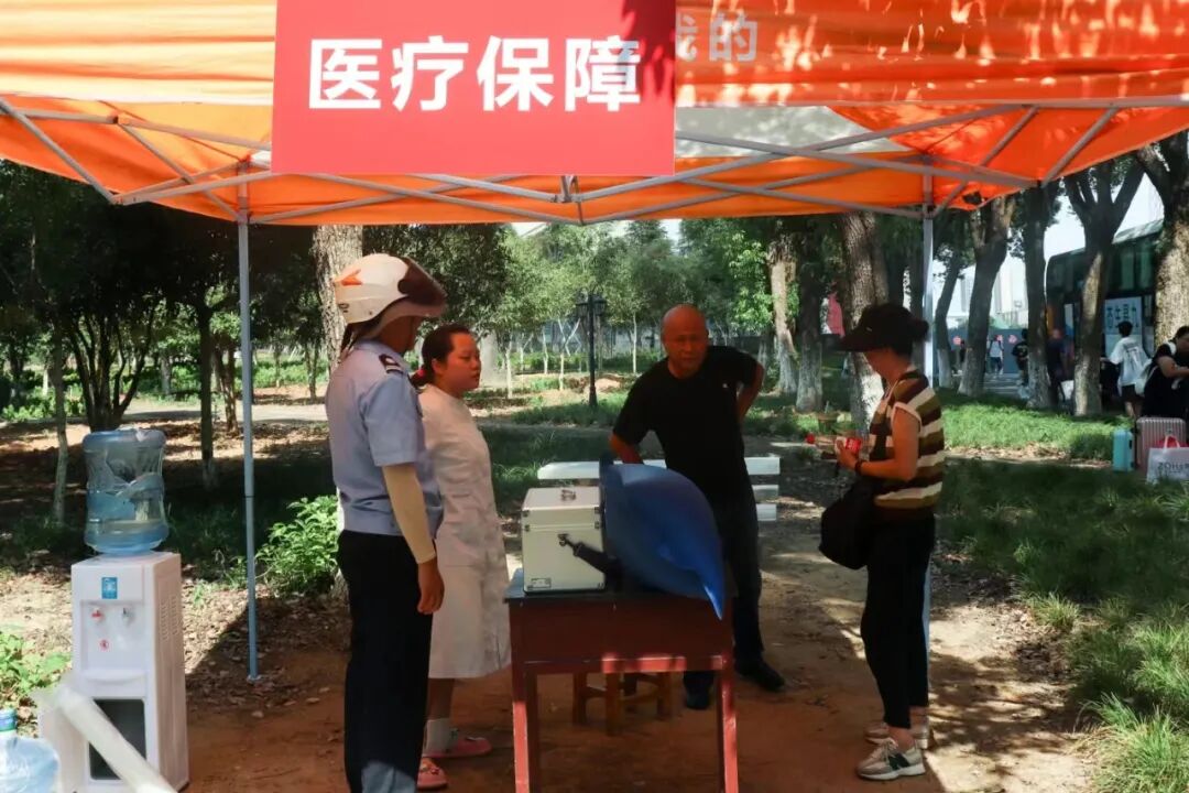 后勤处为所有新生和家长提供免费的解暑绿豆汤,并提供专门的休息室,以供学生及家长小憩;校医务室备足相关药品,安排专人在迎新现场值班值守,确保基础性医疗服务保障到位;