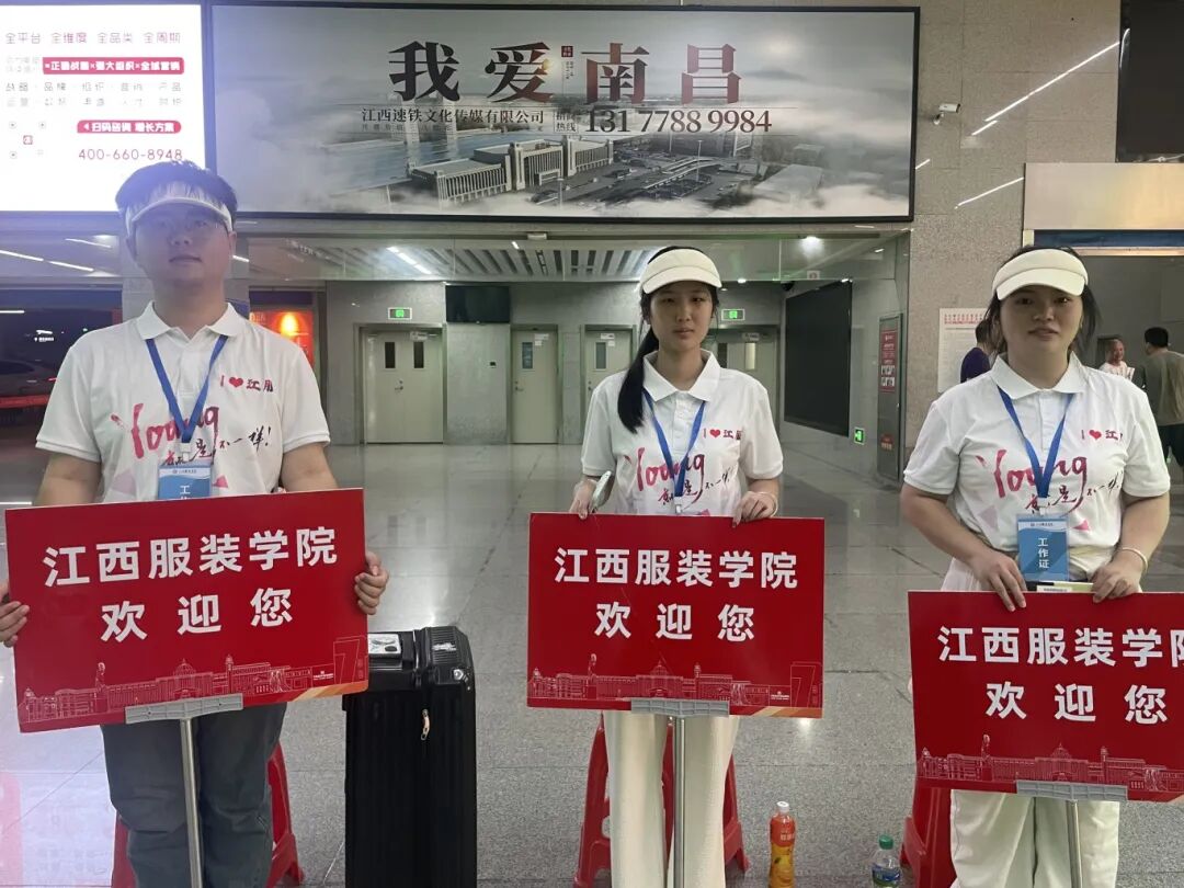 为做好2025级新生迎新工作,学校统筹部署,细化分工,构建起 “车站接站 — 校内报到” 全流程服务链条。迎新当日晨光微亮,江服迎新志愿者们便已在各大车站整装待发:他们高举 “江西服装学院欢迎您” 标牌,面带笑容耐心守候每一趟列车;每当有新生抵达,便主动上前接过沉甸甸的行李,轻声道一句 “辛苦啦,欢迎来到江西服装学院”。一句句亲切问候、一个个贴心举动,悄然驱散了新生初到陌生环境的局促,让迎新第一站满是暖意。