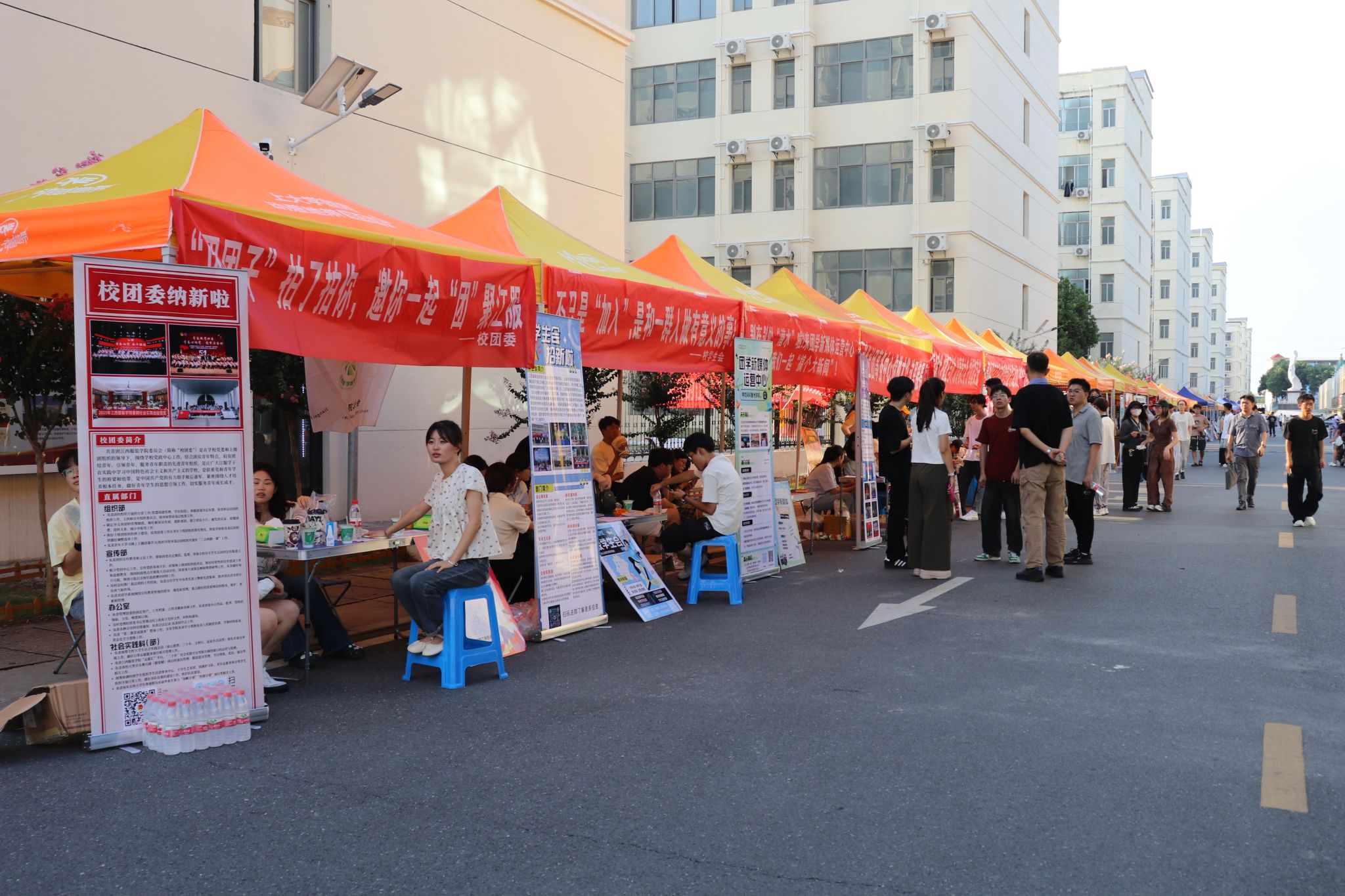 今年迎新,双创街的“社团集市”如期而至,集中展示大学生记者团、校学生会、大学生艺术团等学校各类学生组织、社团的风采。各个社团现场带来了丰富多彩的艺术展演和社团介绍,用表演传递热情,助力新生在江服找到属于自己的舞台,开启丰富多彩的大学生活。